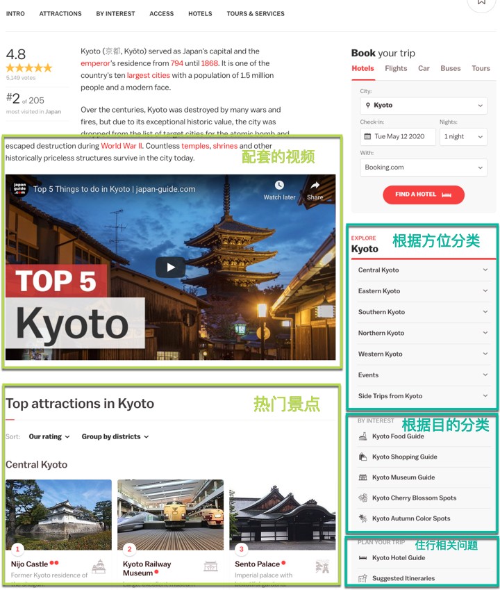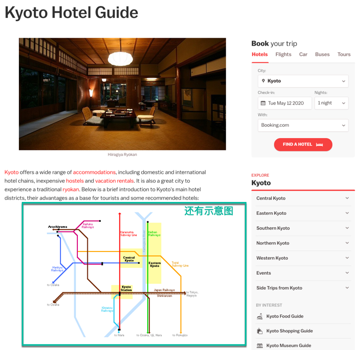 - 对于热门的大城市,还会有专题页面。比如,京都住宿篇。