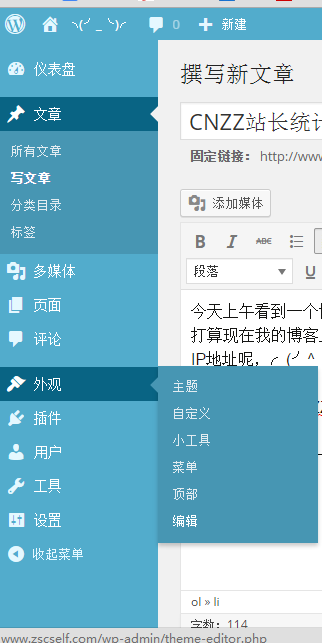 - 进入wordpress控制面板->外观->编辑->模板->底部(当然,你愿意把他加在顶部,我也不管你╮(╯▽╰)╭)。